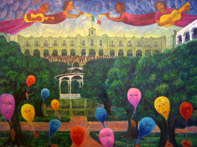 Rodolfo Morales passed away in 2001 and left behind a very popular style of great colors, landscapes, architectural features and people. He too became a philanthropist initiating a foundation under his name and thru it helping restore colonial buildings, churches, beginning schools of art, and many other projects out of mere good will in his home area, the valley of Ocotlan.